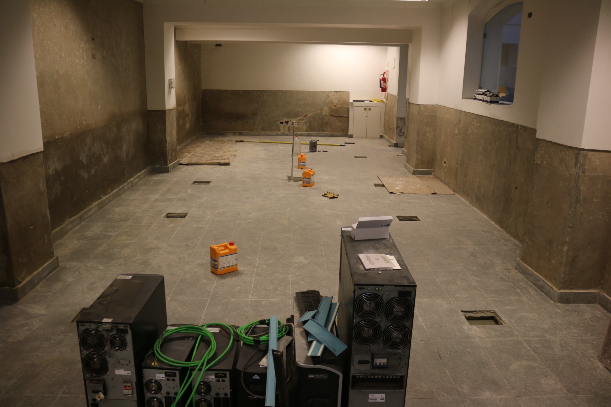 Otro de los trabajos relevantes ha sido el tratamiento de humedad en los muros subterráneos, donde se retiraron los estucos deteriorados y con presencia de eflorescencias salinas, aplicando productos especializados para eliminar las sales, para posteriormente aplicar una capa impermeabilizante. Actualmente se está finalizando el proceso de revestimiento y pintura en esos sectores.