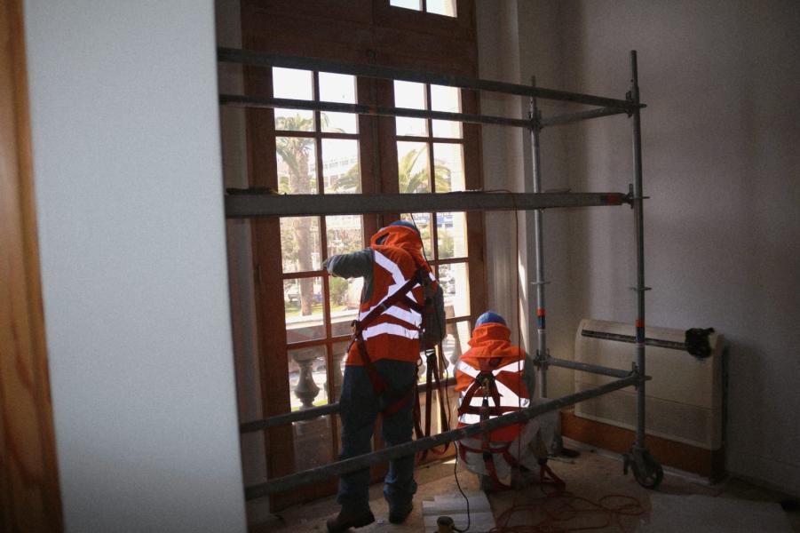 A partir de la próxima semana comenzarán además los trabajos en el exterior del edificio patrimonial, que incluyen la limpieza y retiro de grafitis en toda la fachada por las calles Jorge Washington y Arturo Prat, mediante técnicas de hidrolavado e hidroarenado. Debido a la altura del inmueble, será necesario utilizar una plataforma articulada que se ubicará en la acera por calle Jorge Washington y en la calzada por Arturo Prat.