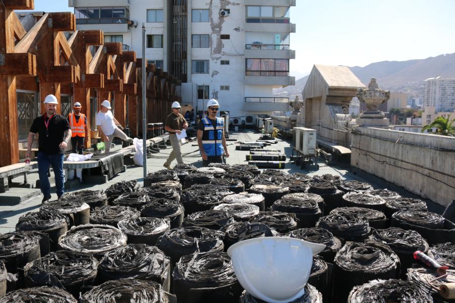 Asimismo, se están realizando mejoras en los servicios higiénicos, incluyendo el cambio de griferías, tapas de baños y elementos anexos, además de la mejora en los baños para personas con discapacidad o movilidad reducida. Paralelamente, se ejecutó la fumigación de las estructuras de madera para el control de plagas y la impermeabilización de la cubierta del edificio mediante la instalación de un nuevo sistema de membranas asfálticas multicapa, con el objetivo de evitar filtraciones de aguas lluvias.